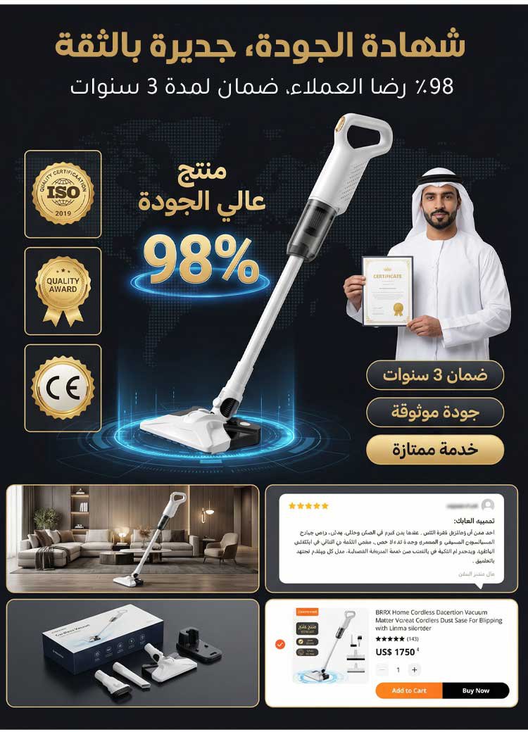 مكنسة كهربائية لاسلكية بقوة شفط عالية لإزالة عث الغبار