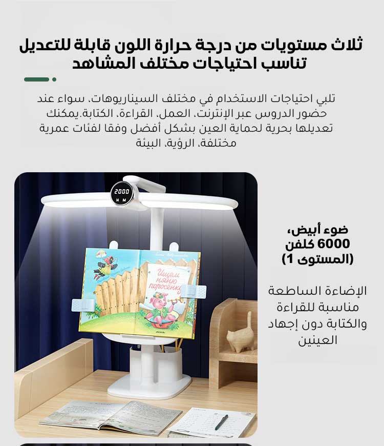 مصباح مكتب متعدد الوظائف بتقنية حماية العين مع حامل كتب
